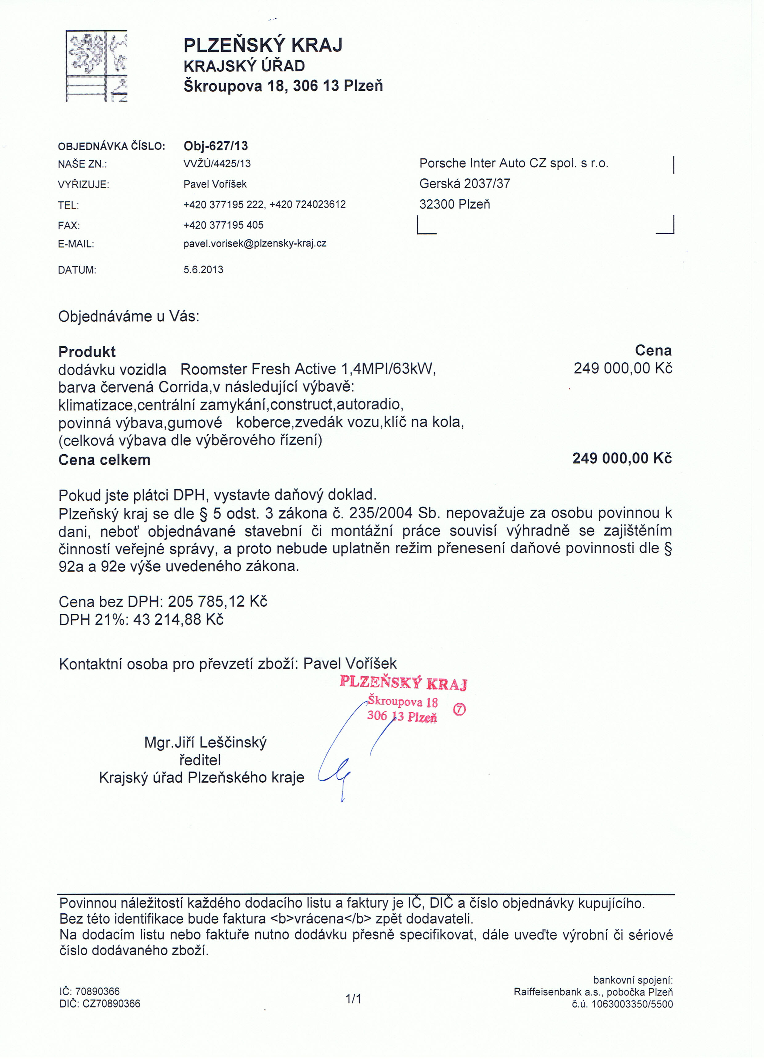 Objednávka | Objednávka 627/13 | ostatní dokumentace - veřejná |