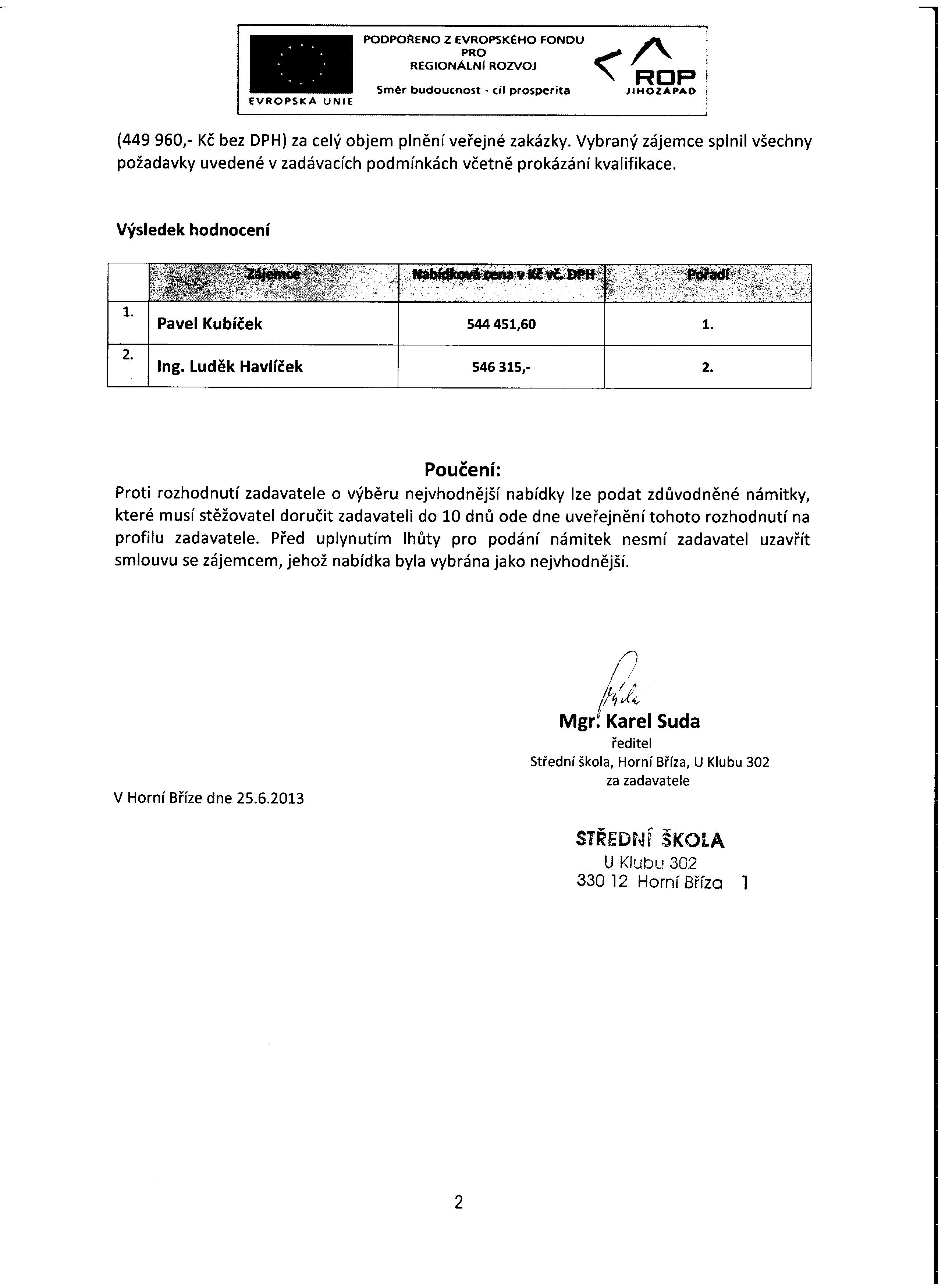 | Název: | Rozhodnutí o výběru nejvhodnější nabídky 2.str. |