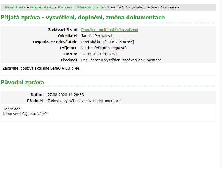 | Název: | Odpověď zadavatele na dotaz dodavatele k SQ |